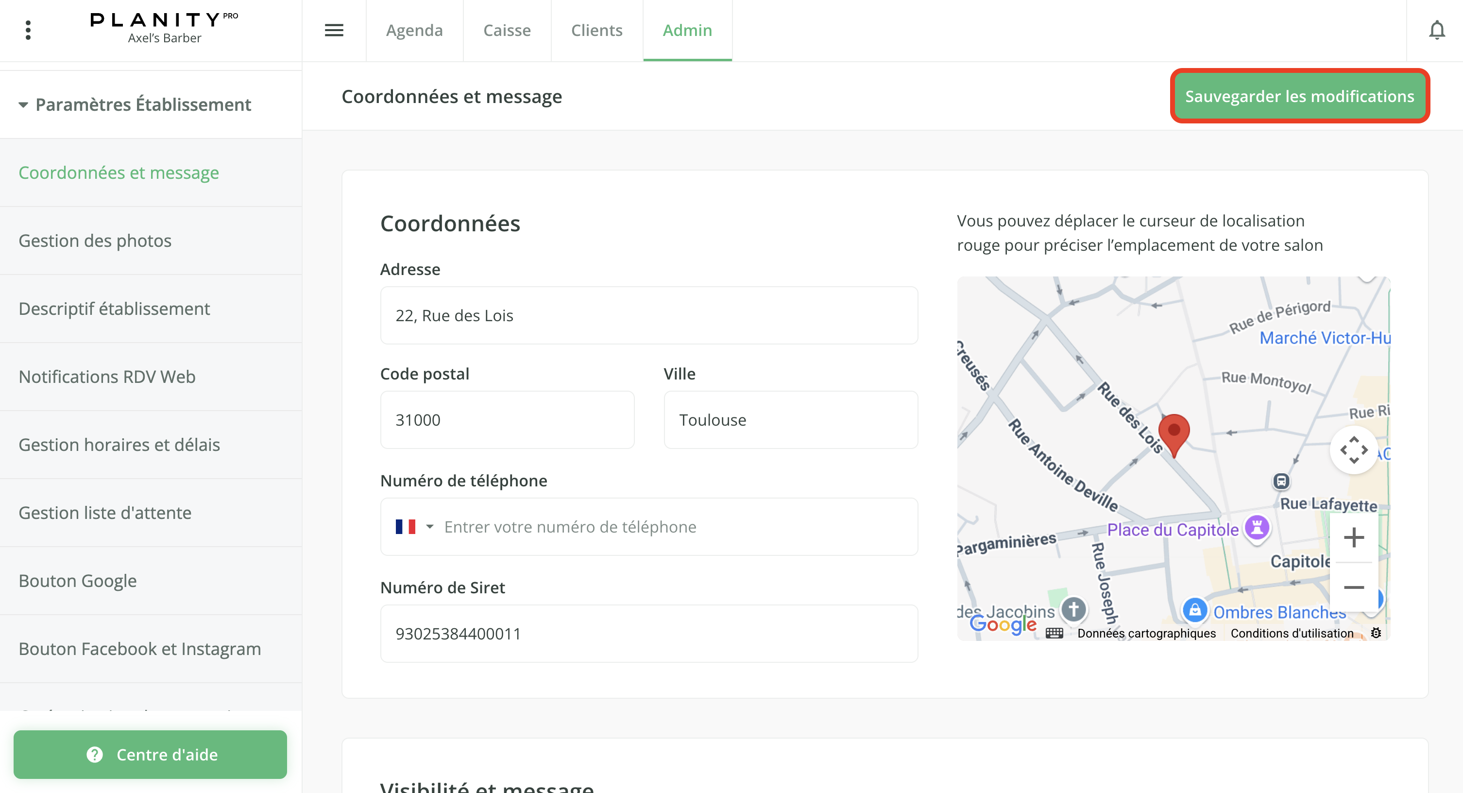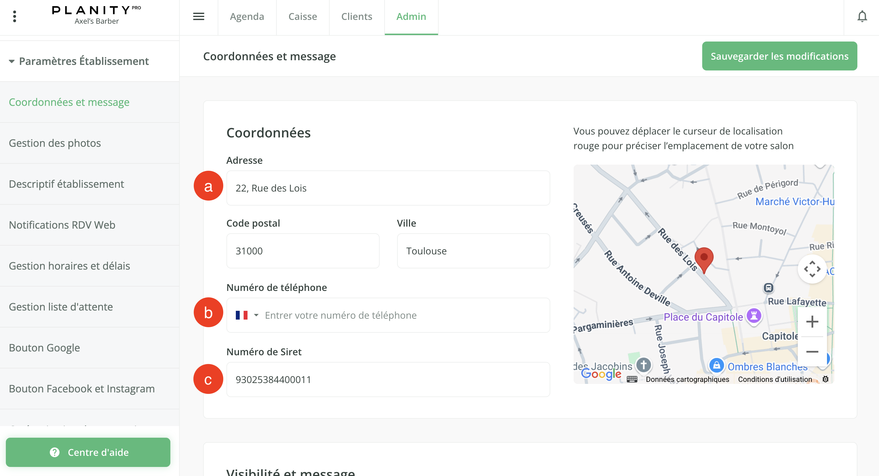 Comment modifier son numéro de téléphone et son adresse d’établissement ?